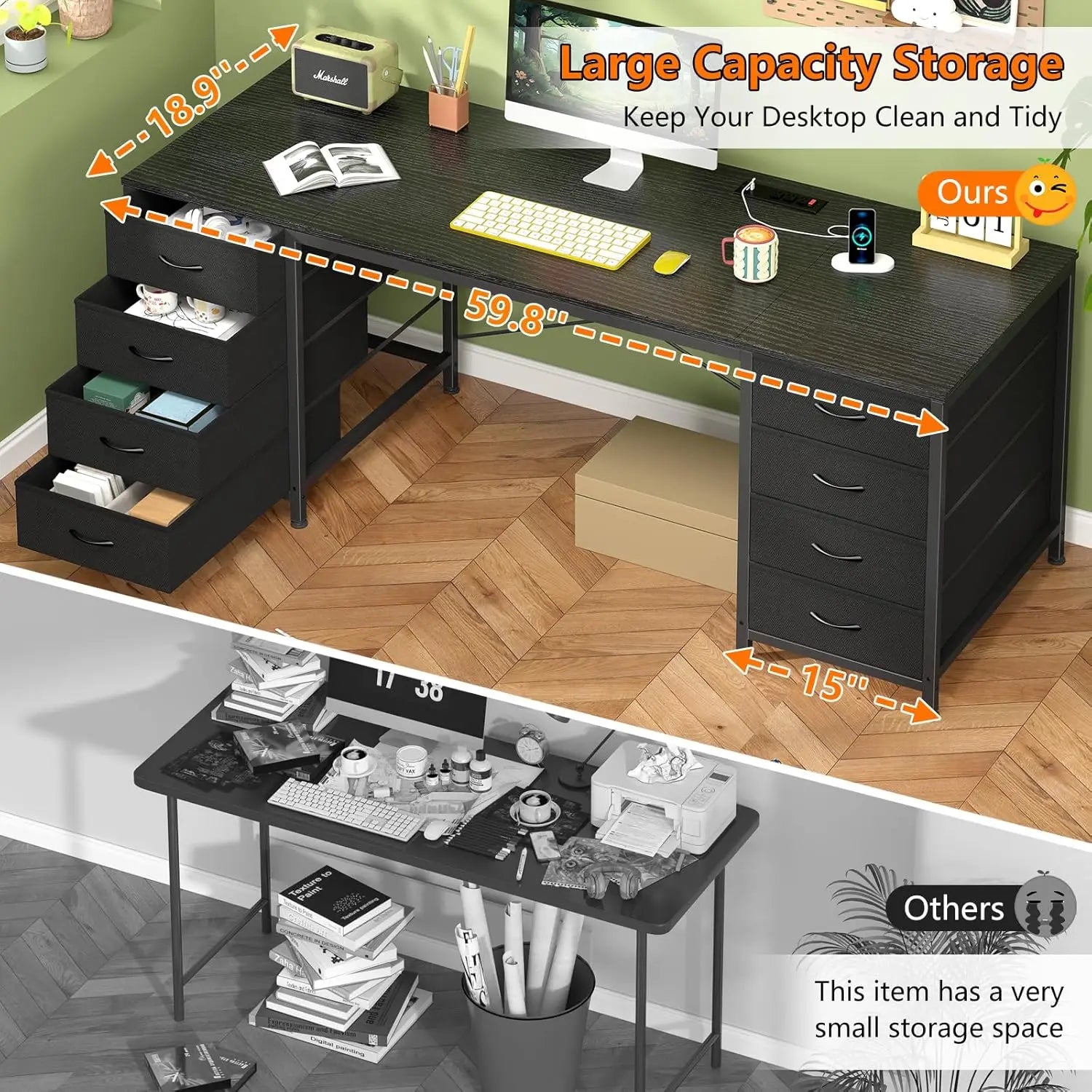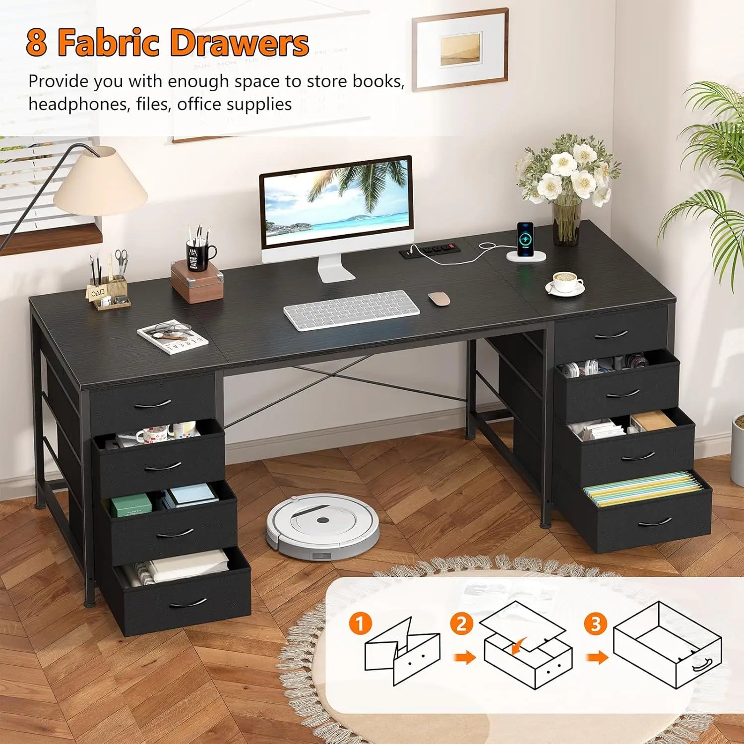 - [DESK WITH 8 DRAWERS]: This desk with storage function has 8 fabric drawers, four drawers on each side, providing you with enough space to store books, headphones, files, office supplies, etc. These drawers are lightweight and easy to pull out, allowing you to easily organize your workspace